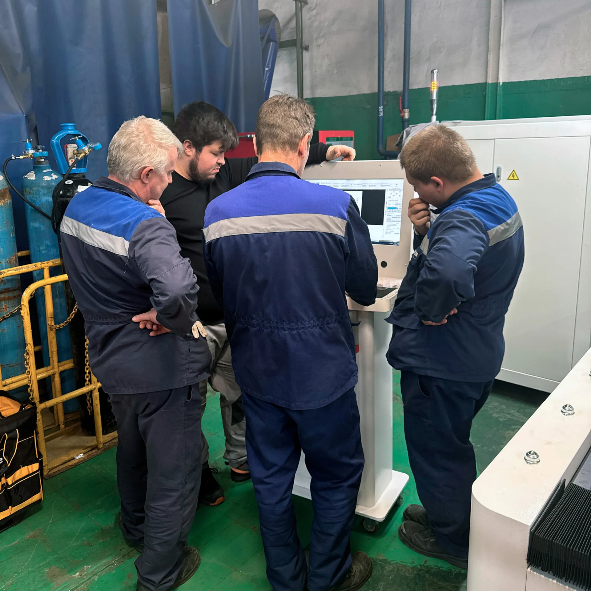 Станок был доставлен на производственную площадку клиента и установлен на заранее подготовленное основание. Все основные узлы и компоненты прошли проверку на целостность и соответствие спецификации. После сборки оборудование было подключено к системам электропитания, охлаждения, вытяжной вентиляции и газоснабжения. Были соблюдены все требования по безопасности и стандартам эксплуатации.