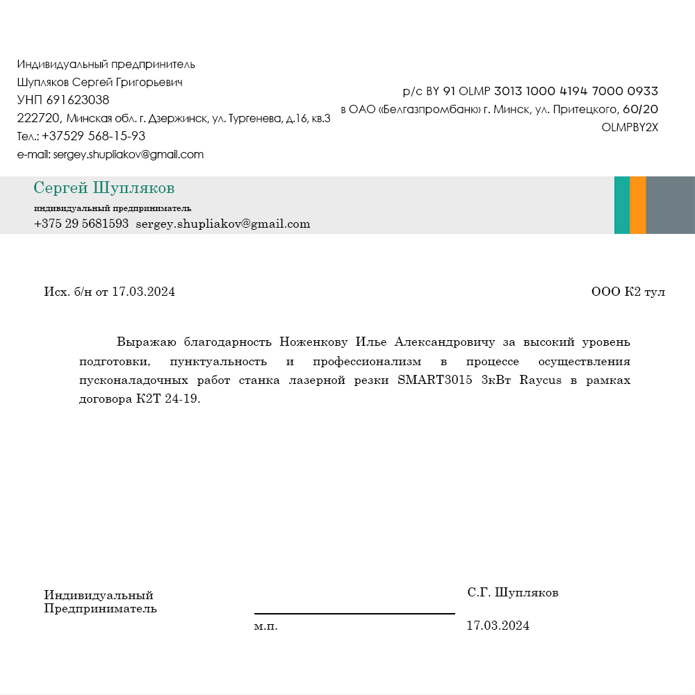 Компания К2 Тул успешно провела пусконаладочные работы для мастера по работе с металлом из Беларуси. Заказчик обратился к нам с необходимостью приобрести высокопроизводительное оборудование для резки углеродистой стали толщиной до 20 мм. Важными критериями выбора поставщика для него были: наличие на складе и гибкие условия оплаты. Станок HGTECH SMART3015 с лазерным источником Raycus 3 кВт был выбран на основании технического задания с акцентом на качество реза, скорость обработки и надежность в эксплуатации.