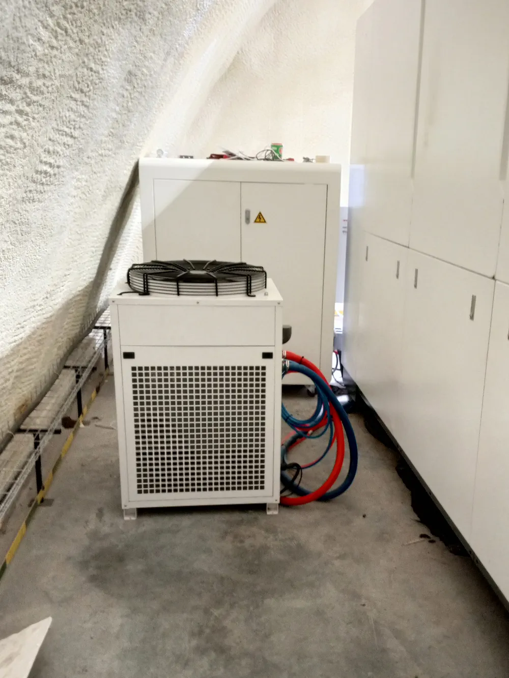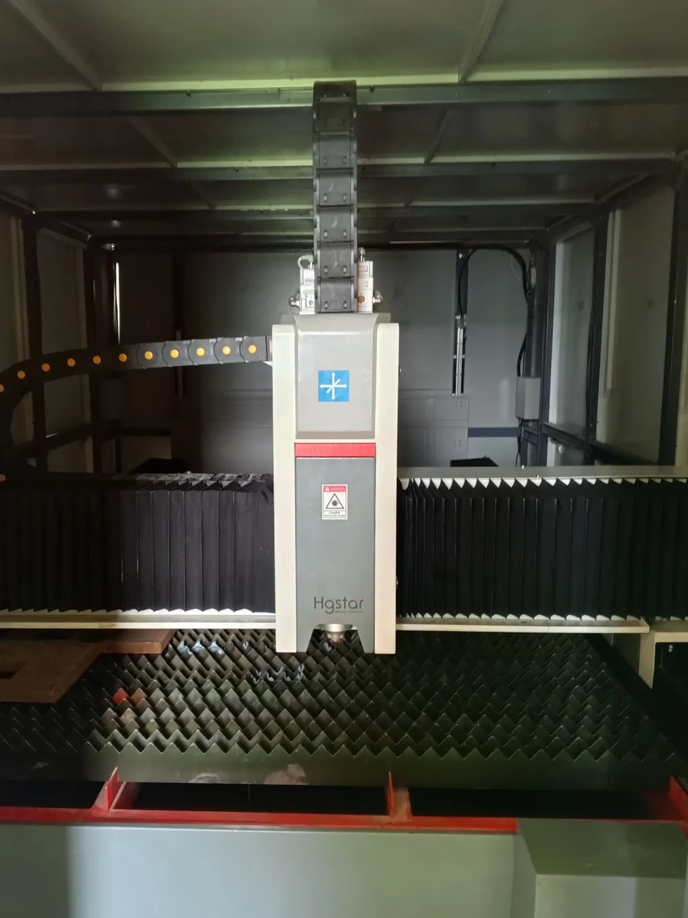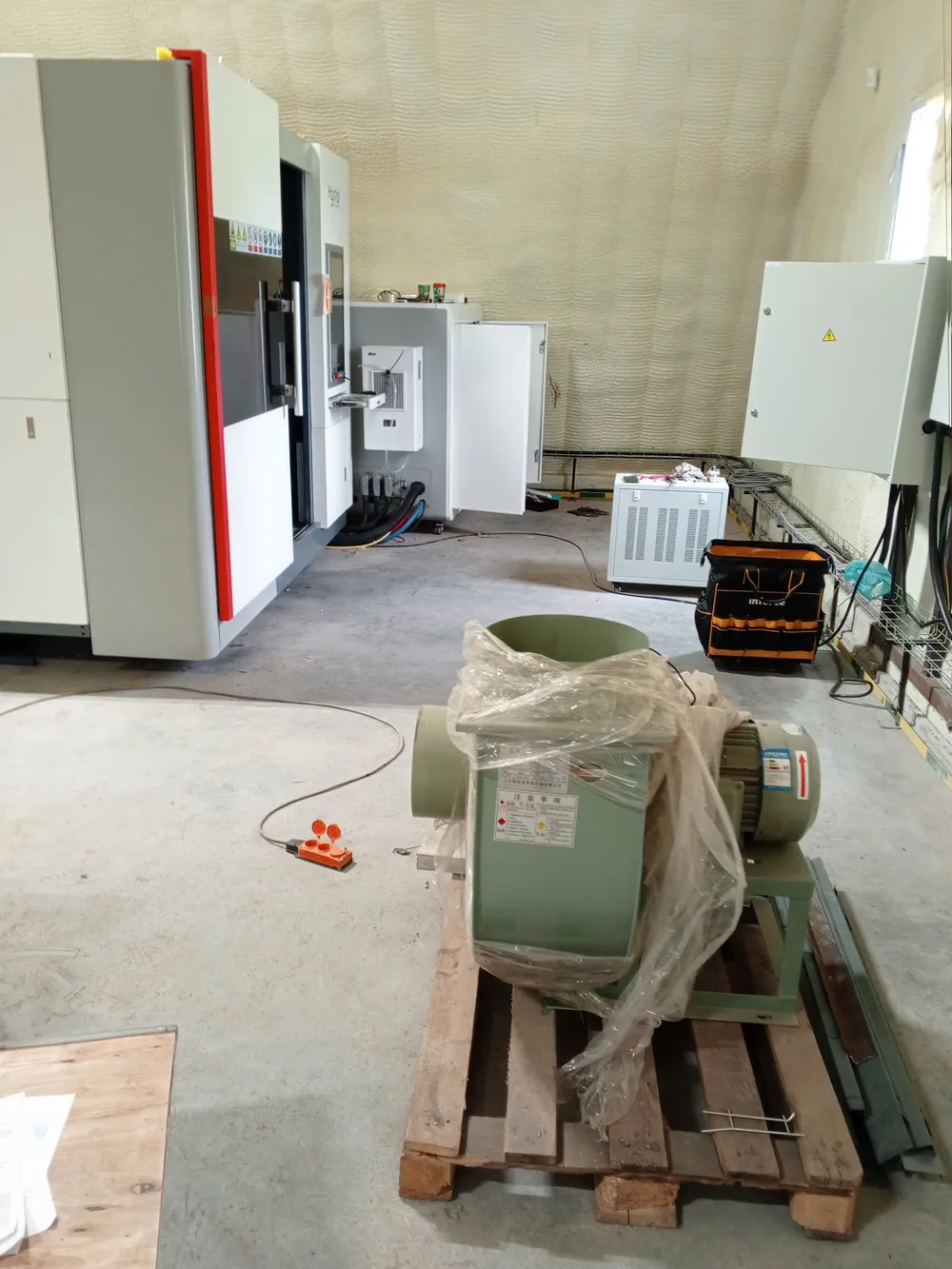 Оборудование доставили на территорию цеха заказчика, проверили целостность и комплектацию, и приступили к сборке. Станок выставили по всем параметрам геометрической точности, подключили системы электропитания, вентиляции, охлаждения, лазерный источник, головку, компрессор и другую оснастку.